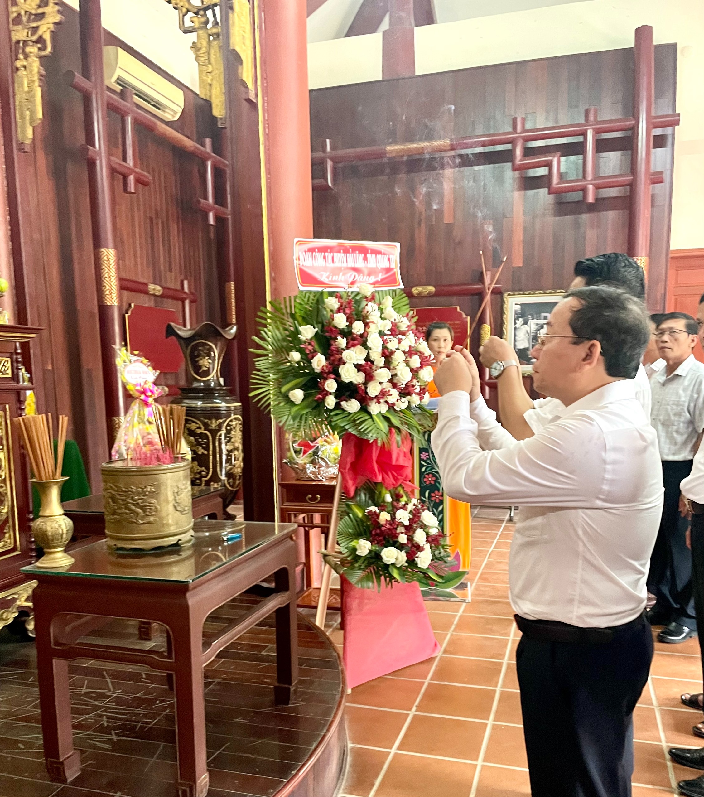 Đ/c Lê Thế Quảng - TUV, Bí thư Huyện ủy, Chủ tịch HĐND huyện Hải Lăng cùng đoàn công tác dâng hương tại khu lưu niệm cố Thủ tướng Phạm Văn Đồng