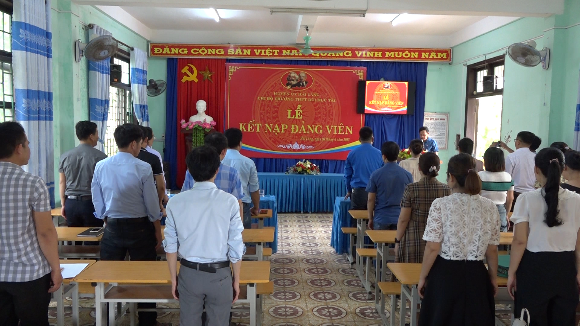 Ngày 06/6/2023, Chi bộ Trường THPT Bùi Dục Tài đã tổ chức Lễ Kết nạp Đảng viên cho quần chúng học sinh ưu tú Võ Thị Mỹ Ánh - Ủy viên BCH Đoàn trường, Bí thư Chi đoàn 12B3 năm học 2022 - 2023. Đồng chí Lê Văn Phong – Huyện ủy viên, Bí thư Huyện Đoàn, Chủ tịch Hội LHTN Việt Nam huyện Hải Lăng; đồng chí Phan Hồng Khánh - Bí thư Chi bộ, Hiệu trưởng nhà trường cùng tham dự buổi lễ.