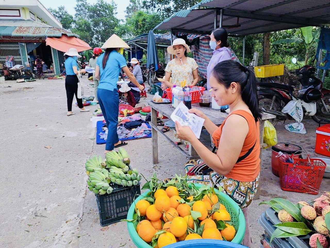 Hội LHPN xã Hải Trường phát tờ rơi tuyên truyền hạn chế sử dụng rác thải nhựa, túi ni lông cho chị em nhân Ngày Môi trường thế giới 5/6 tại chợ Bến Đá