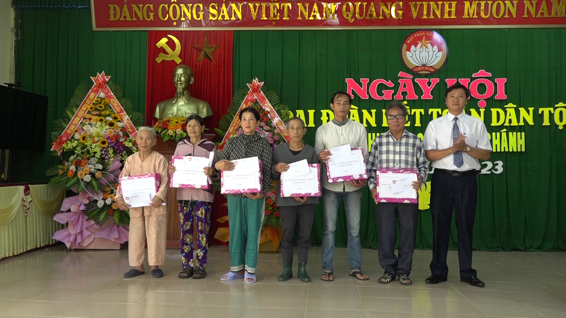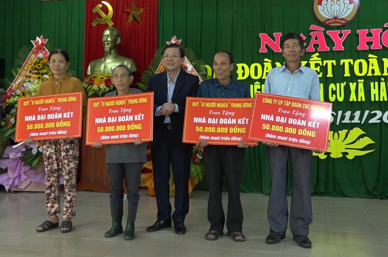 Uỷ ban Trung ương MTTQ Việt Nam tặng 4 căn nhà Đại đoàn kết, trích từ Quỹ "Vì người nghèo" với trị giá 50 triệu đồng/căn nhà cho các hộ nghèo của địa phương.