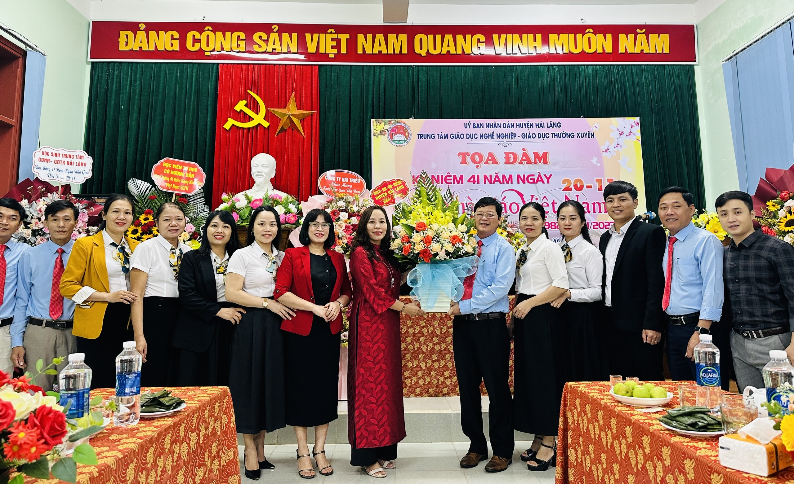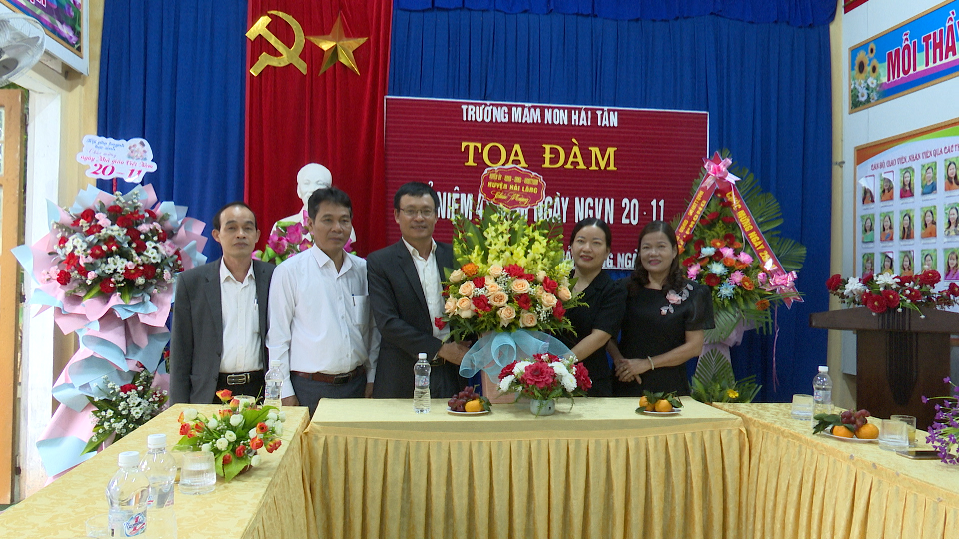 Đoàn do đ/c Nguyễn Khánh Vũ-TUV, Bí thư Huyện ủy dẫn đầu đã đến thăm và tặng hoa chúc mừng Trường Chính trị Lê Duẩn, Sở GD&ĐT tỉnh, Trường THPT Trần Thị tâm, Trường TH&THCS Hải Quế, Trường Mầm non Hải Quế, Trường Mầm non Hải Thiện, Trường Mầm non Hải Ba.