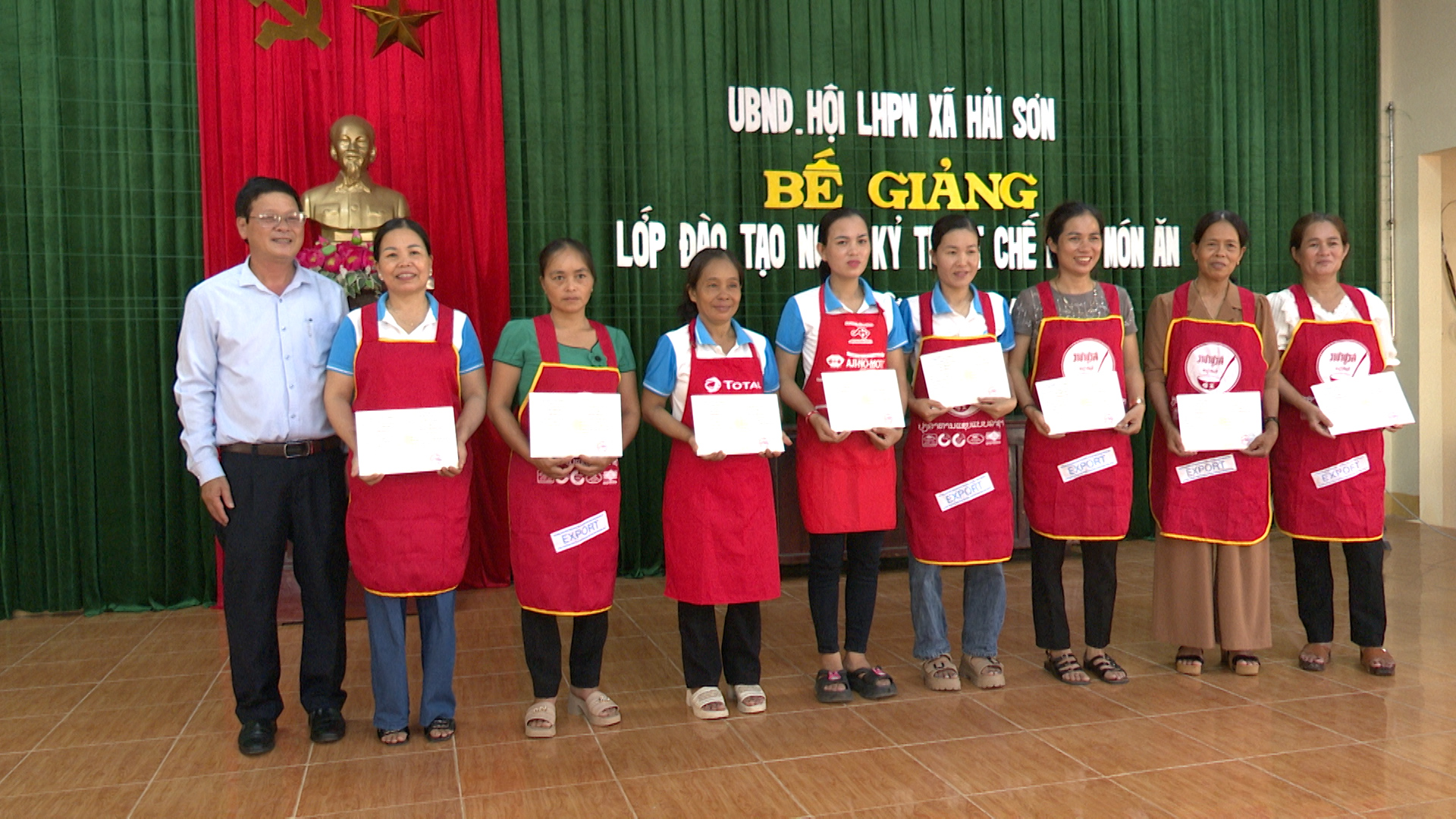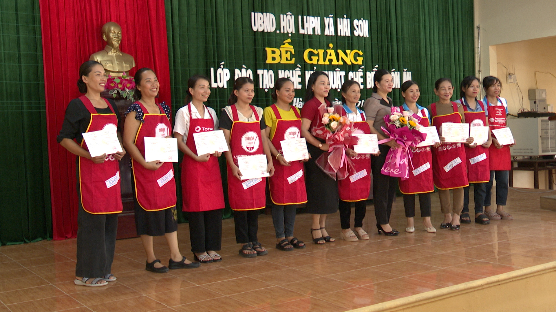 Vừa qua, Trung tâm GDNN-GDTX huyện đã phối hợp với xã Hải Sơn tổ chức bế giảng lớp Kỷ thuật chế biến món ăn cho 33 học viên là hội viên Hội Liên hiệp phụ nữ xã. Đại diện Hội LHPN huyện, Phòng Lao Động TB&XH huyện cùng tham dự buổi lễ.