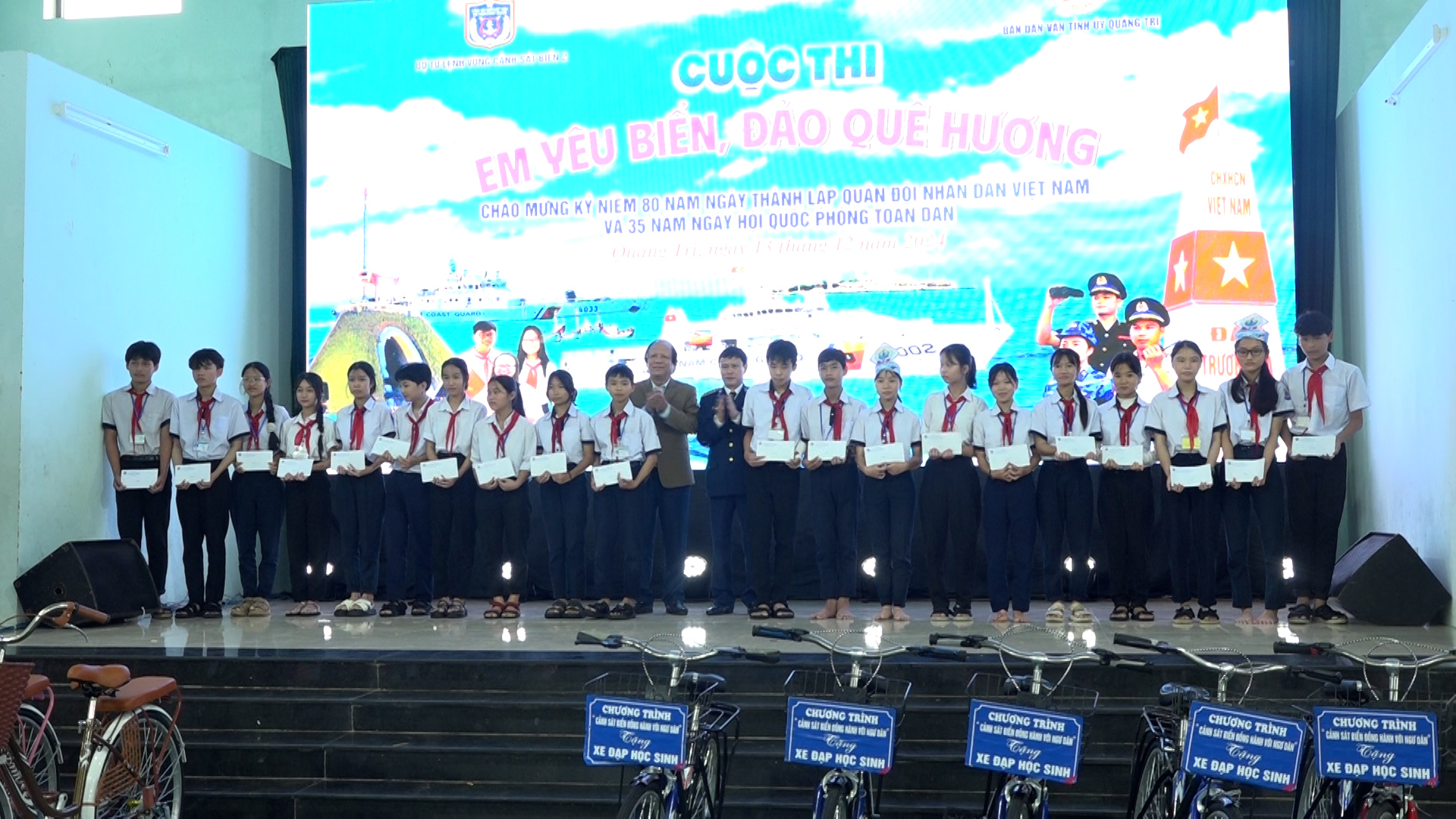 Dịp này, Bộ Tư lệnh Vùng Cảnh sát biển 2 đã trao tặng 25 chiếc xe đạp, 100 suất học bổng, mỗi suất trị giá 1 triệu đồng cho các em học sinh có hoàn cảnh khó khăn. Ban tổ chức cũng đã trao thưởng cho các em học sinh đạt giải từ cuộc thi sáng tạo video clip “Biển, đảo Tổ quốc và người chiến sĩ Cảnh sát biển”.