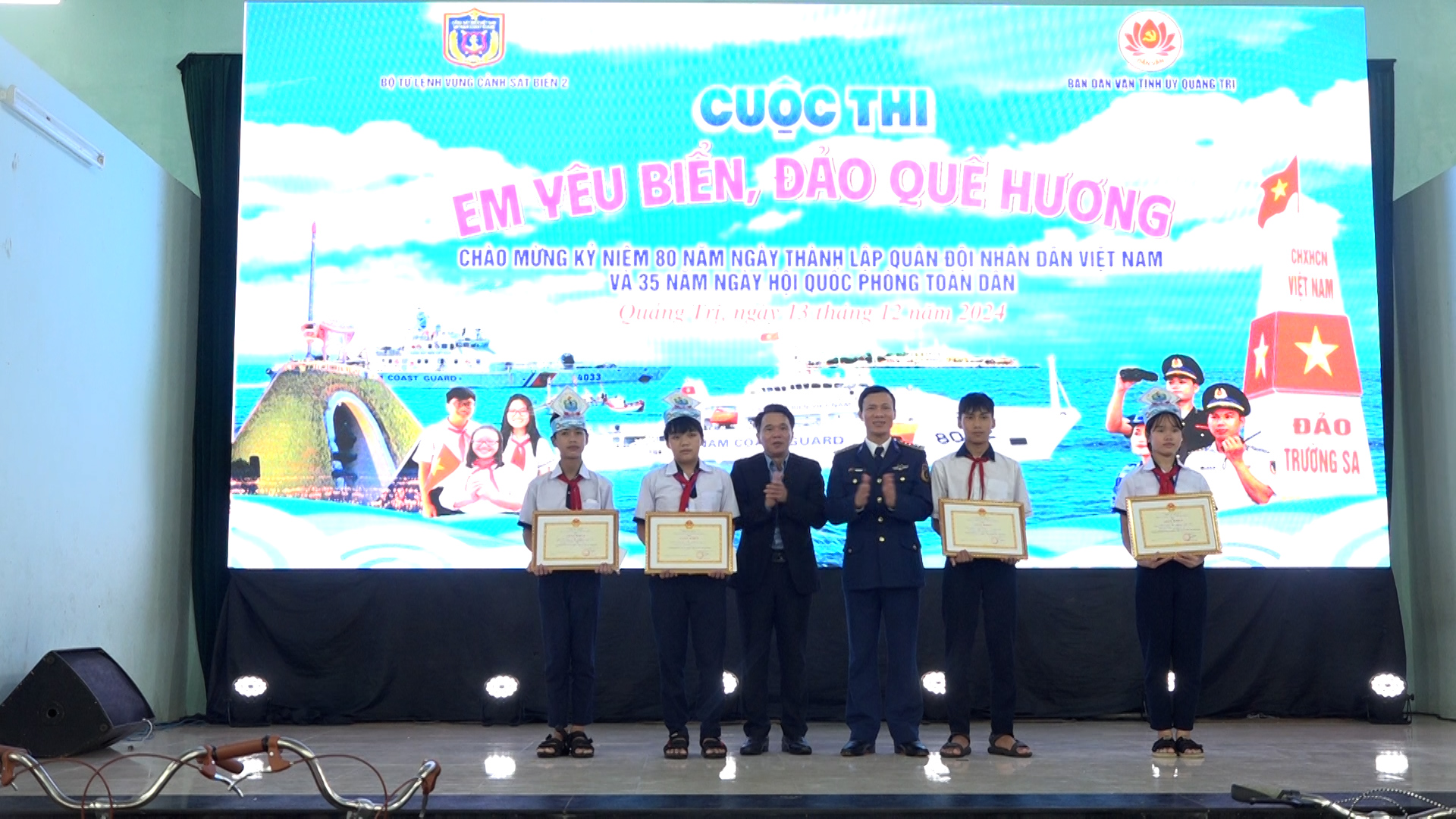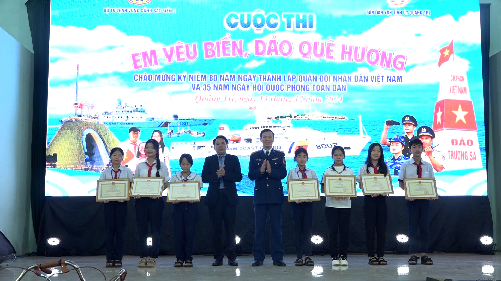 Nhân dịp kỷ niệm 80 năm ngày truyền thống Quân đội nhân dân Việt Nam (22/12/1944-22/12/2024) và 35 năm ngày hội Quốc phòng toàn dân (22/12/1989 – 22/12/2024), ngày 13/12, tại trường TH&THCS Hải Khê, Bộ Tư lệnh Vùng Cảnh sát biển 2 phối hợp với Ban Dân vận Tỉnh ủy Quảng Trị tổ chức cuộc thi “Em yêu biển đảo quê hương”.
