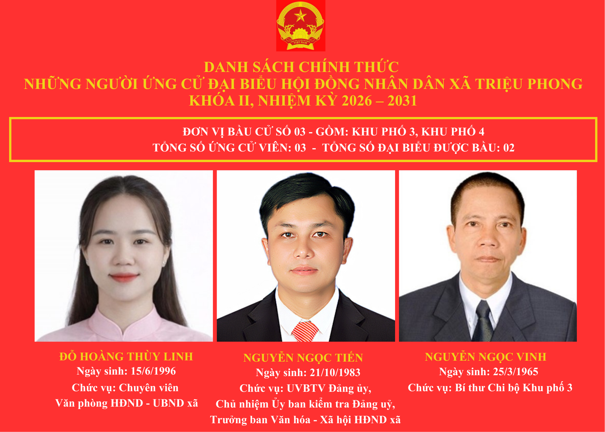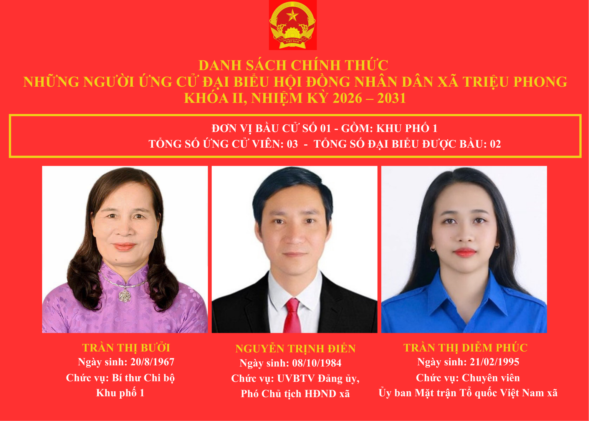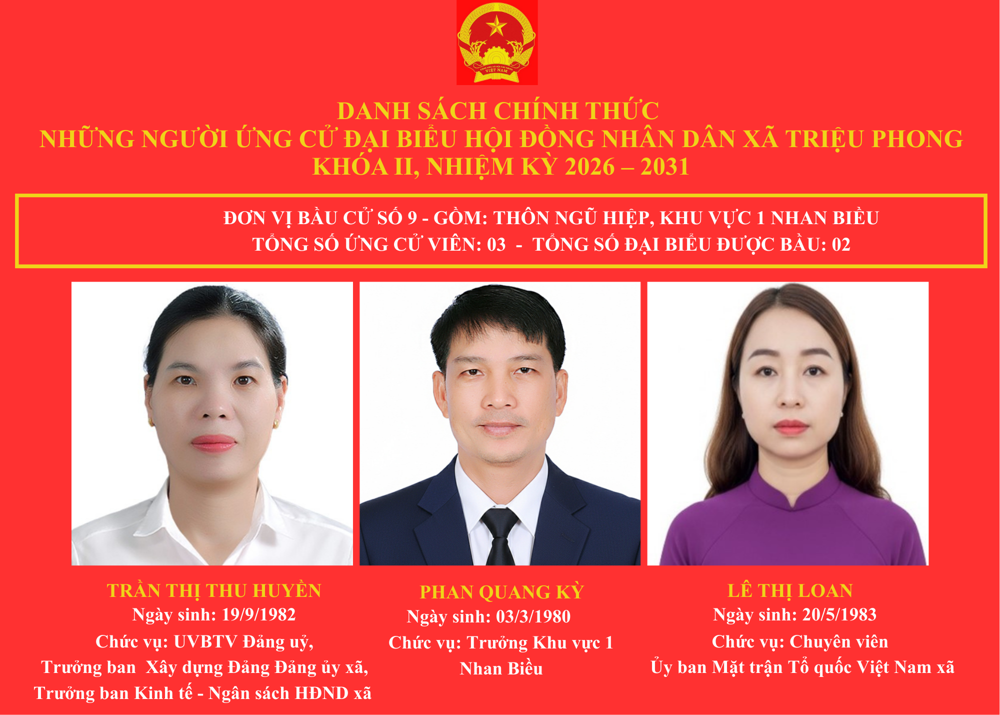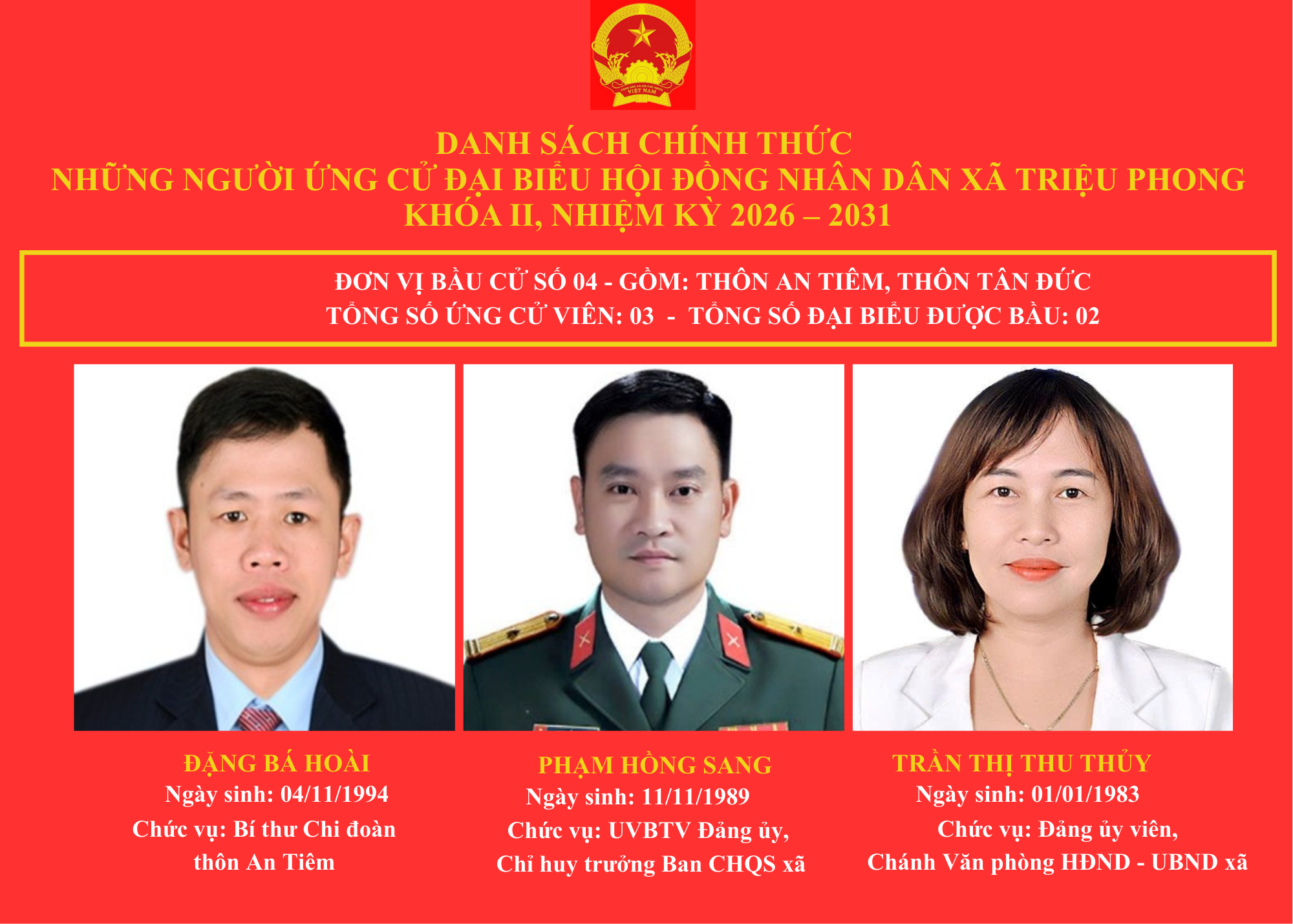 DANH SÁCH CHÍNH THỨC NHỮNG NGƯỜI ỨNG CỬ ĐẠI BIỂU HỘI ĐỒNG NHÂN DÂN XÃ TRIỆU PHONG KHOÁ II, NHIỆM KỲ 2026-2031 🇻🇳