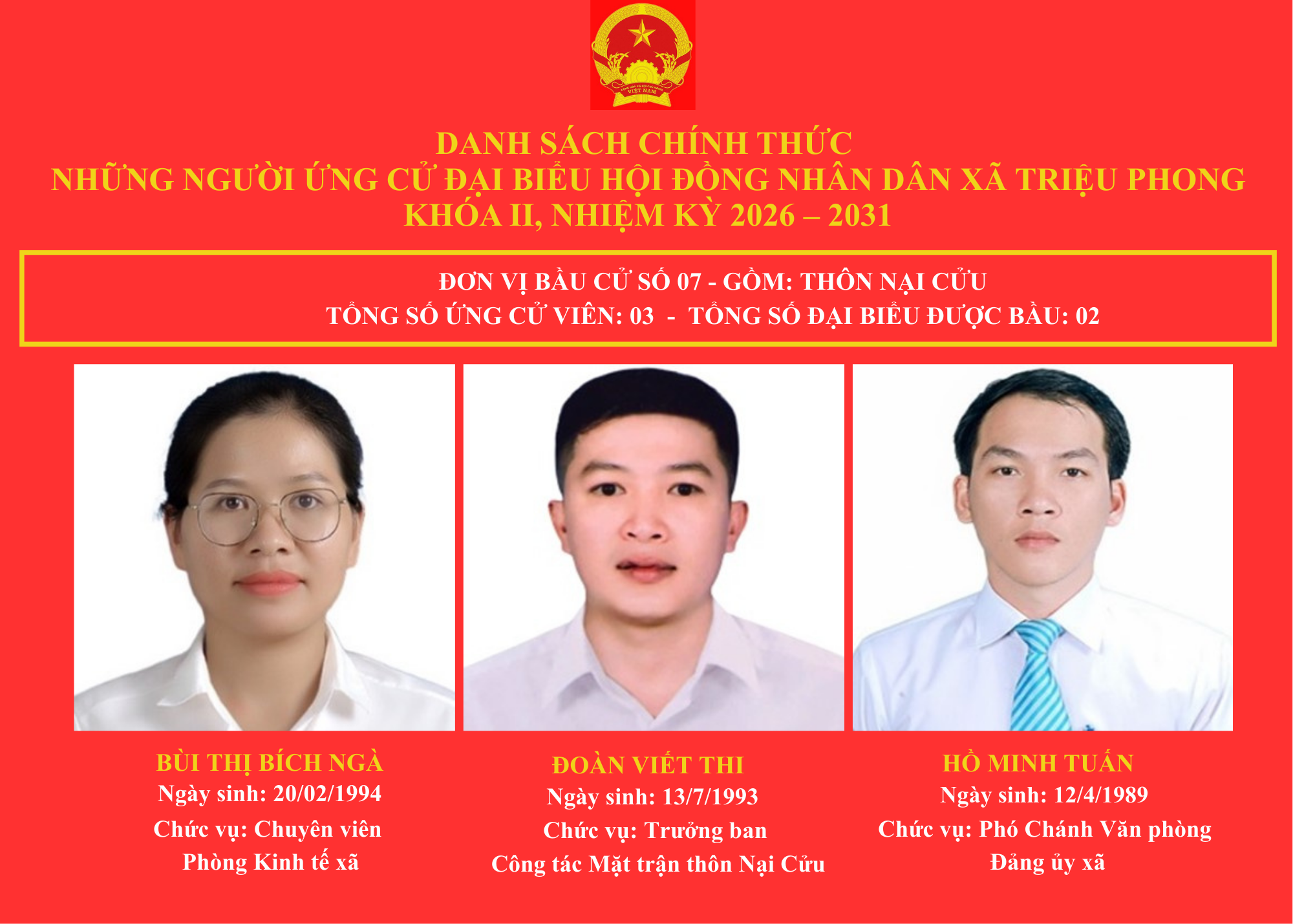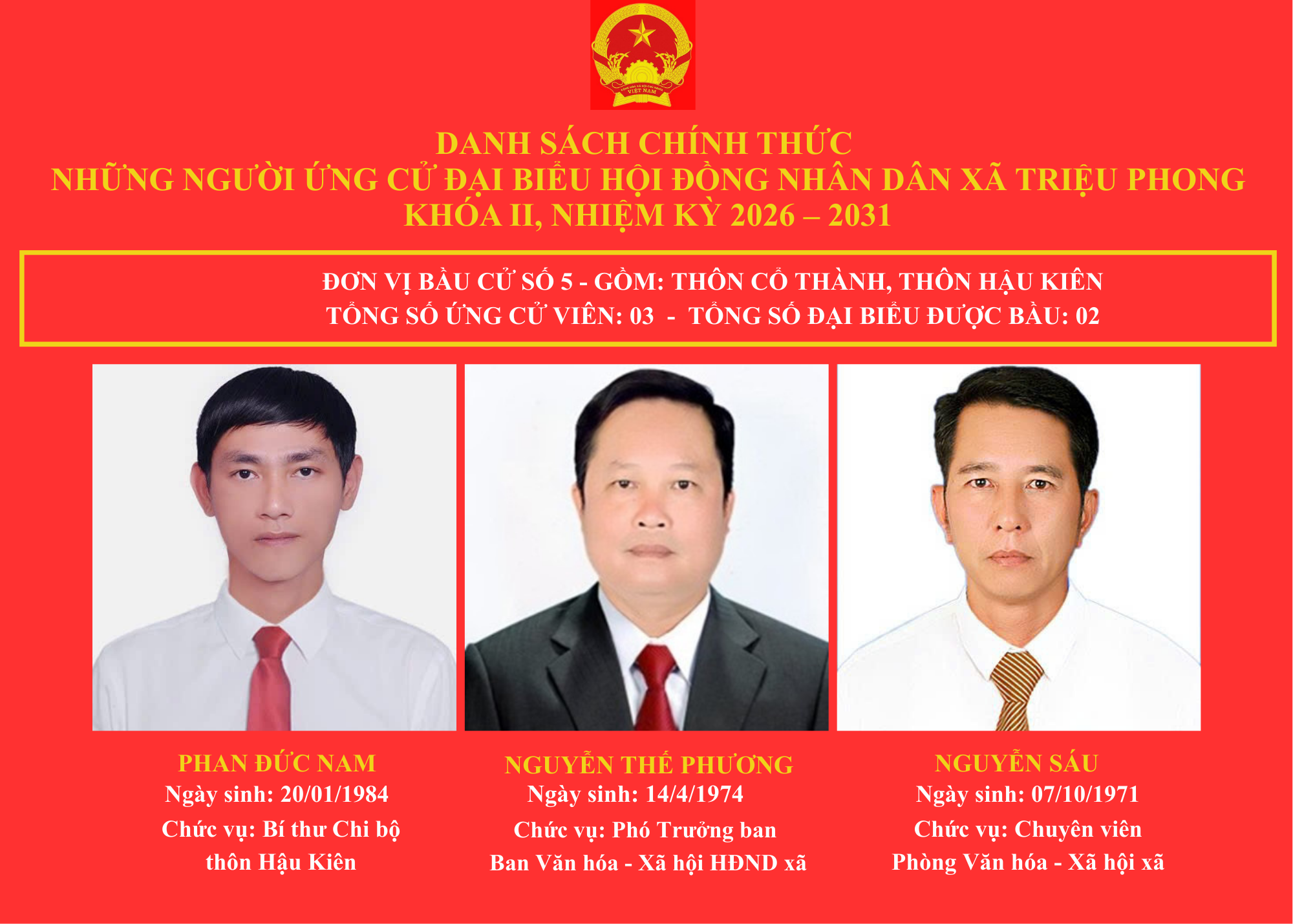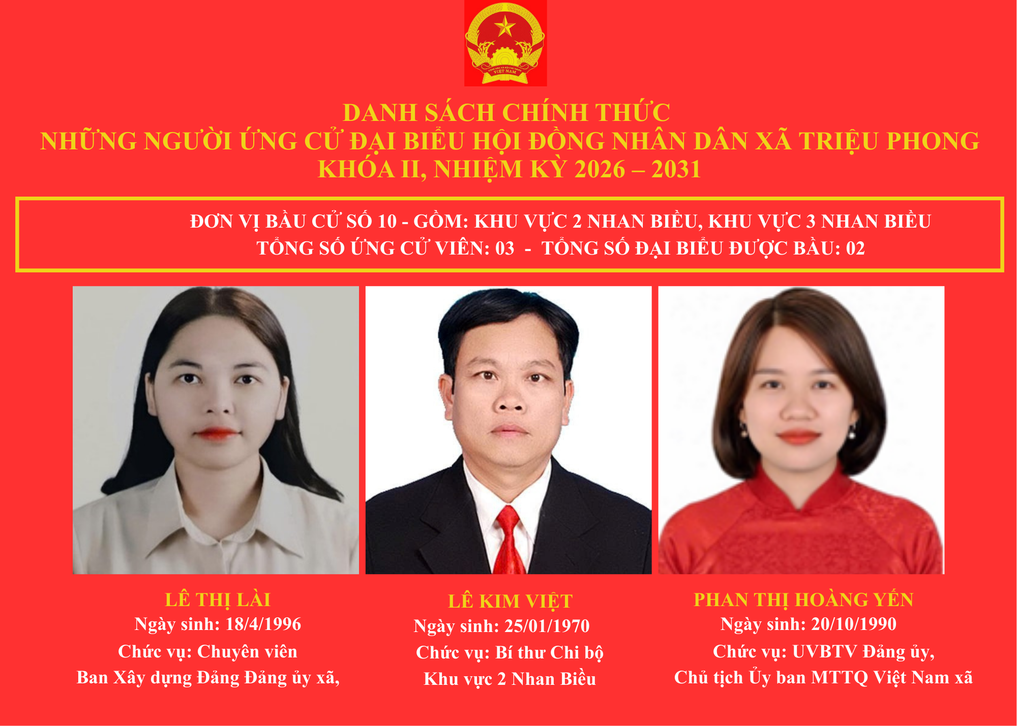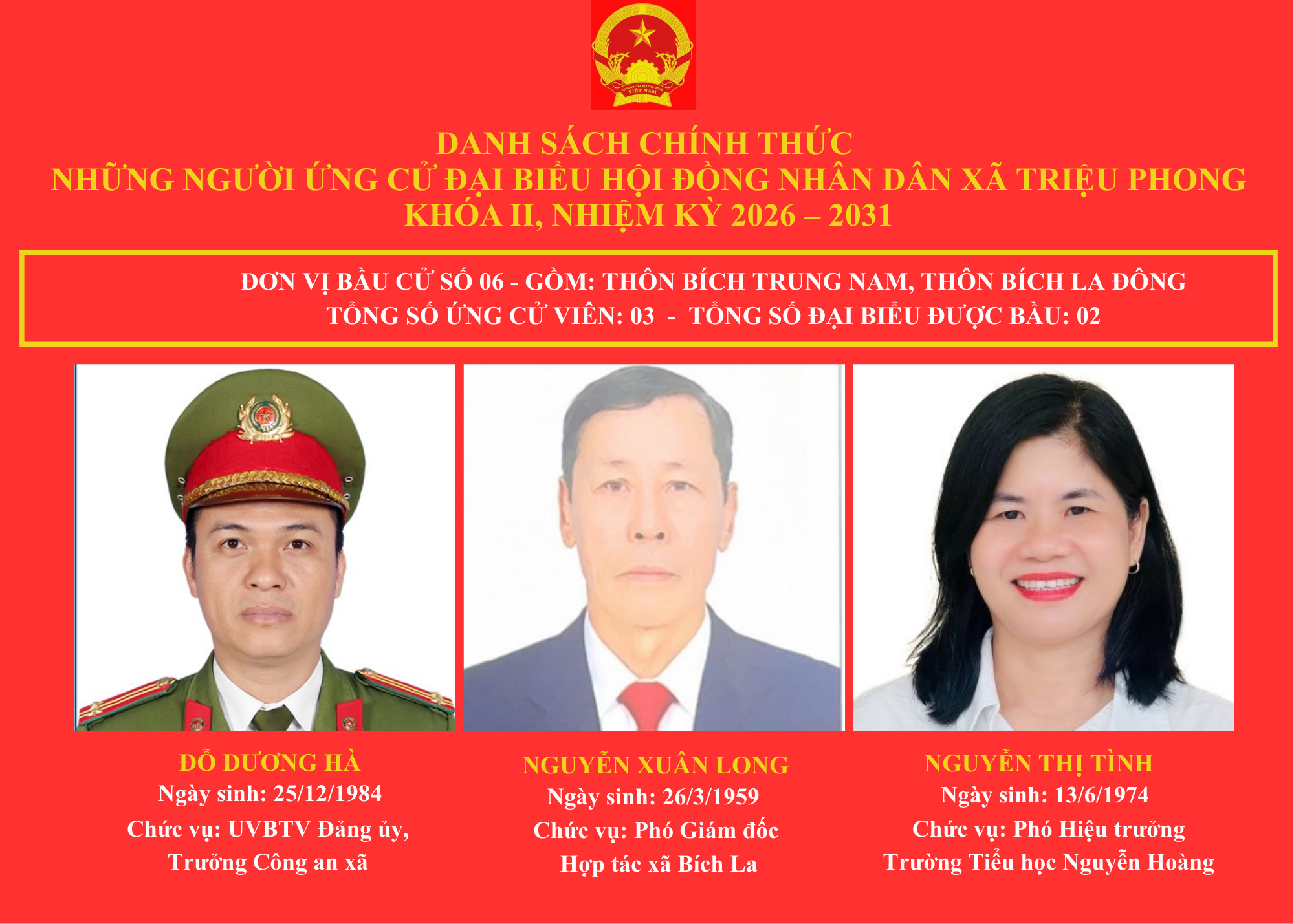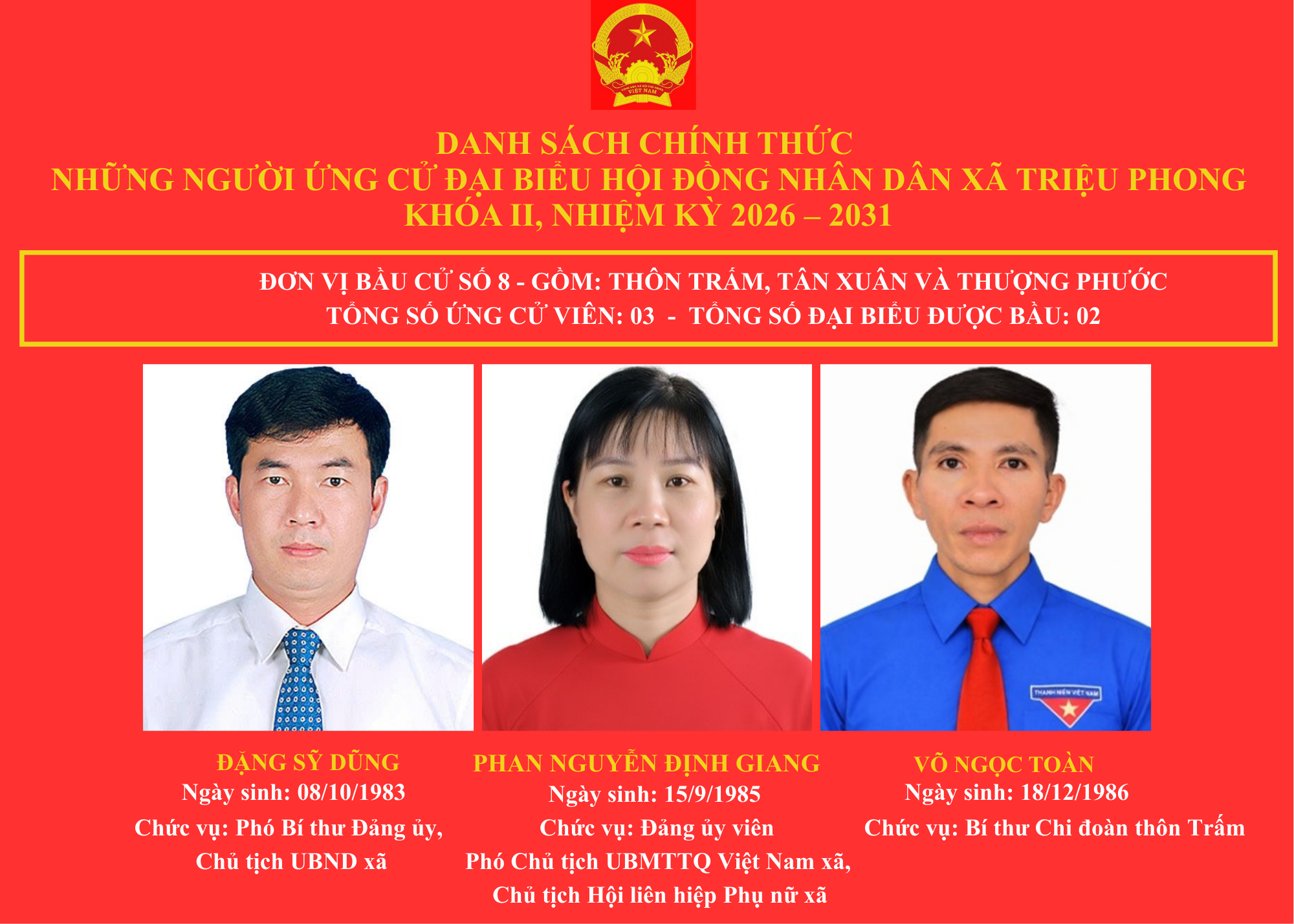 DANH SÁCH CHÍNH THỨC NHỮNG NGƯỜI ỨNG CỬ ĐẠI BIỂU HỘI ĐỒNG NHÂN DÂN XÃ TRIỆU PHONG KHOÁ II, NHIỆM KỲ 2026-2031 🇻🇳