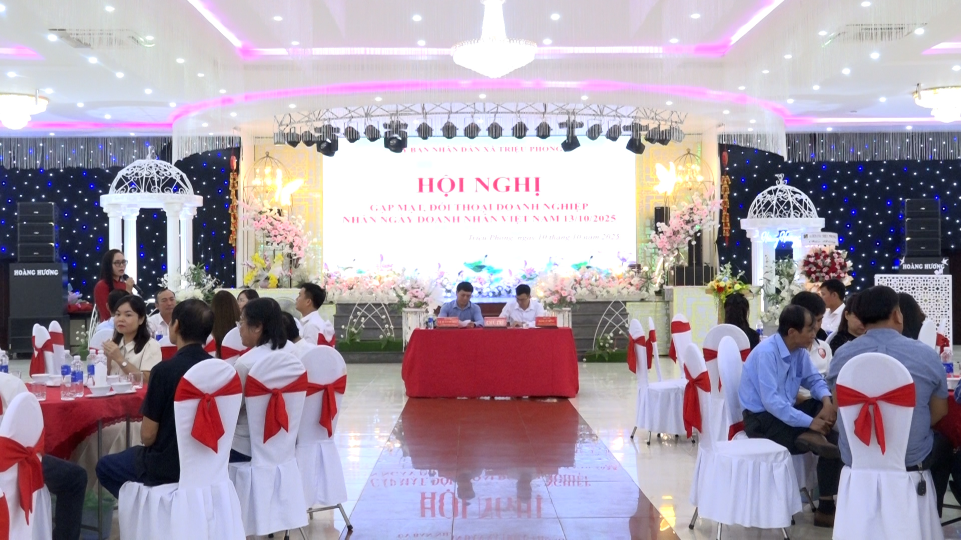 Chiều ngày 10/10/2025, UBND xã Triệu Phong tổ chức đối thoại, gặp mặt với các doanh nghiệp, hộ kinh doanh trên địa bàn xã nhân kỷ niệm 21 năm ngày Doanh nhân Việt Nam (13/10/2004 - 13/10/2025). Dự buổi  đối thoại có đồng chí Nguyễn Văn Thành – Bí thư Đảng ủy, Chủ tịch HĐND xã, đồng chí Đặng Sỹ Dũng – Phó Bí thư, Chủ tịch UBND xã cùng các đồng chí trong BTV, BCH Đảng ủy xã, các doanh nghiệp, hộ kinh doanh trên địa bàn xã.
