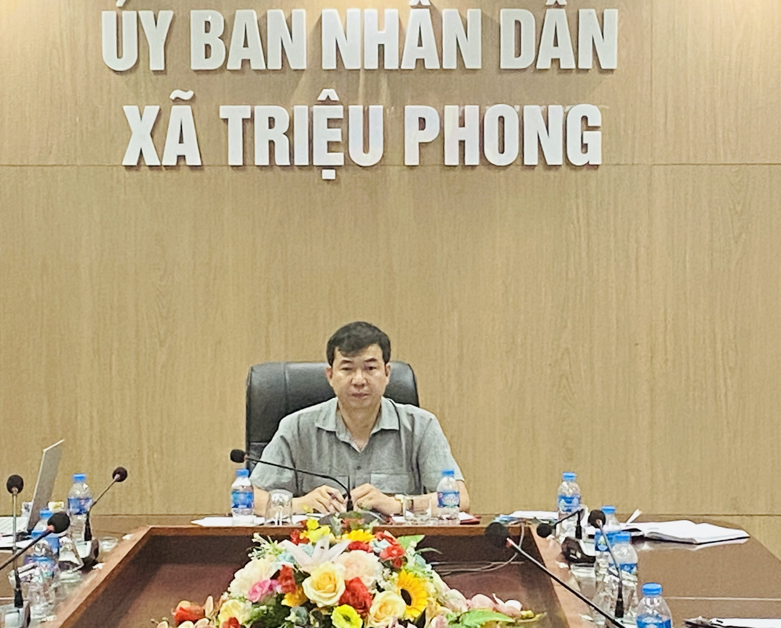 Tại điểm cầu UBND xã Triệu Phong có đồng chí Đặng Sỹ Dũng - Phó Bí thư, Chủ tịch UBND xã cùng các đồng chí trong Ban Thường vụ Đảng uỷ, Trưởng các phòng, ban ngành đoàn thể và Trưởng các thôn, khu phố trên địa bàn xã.
