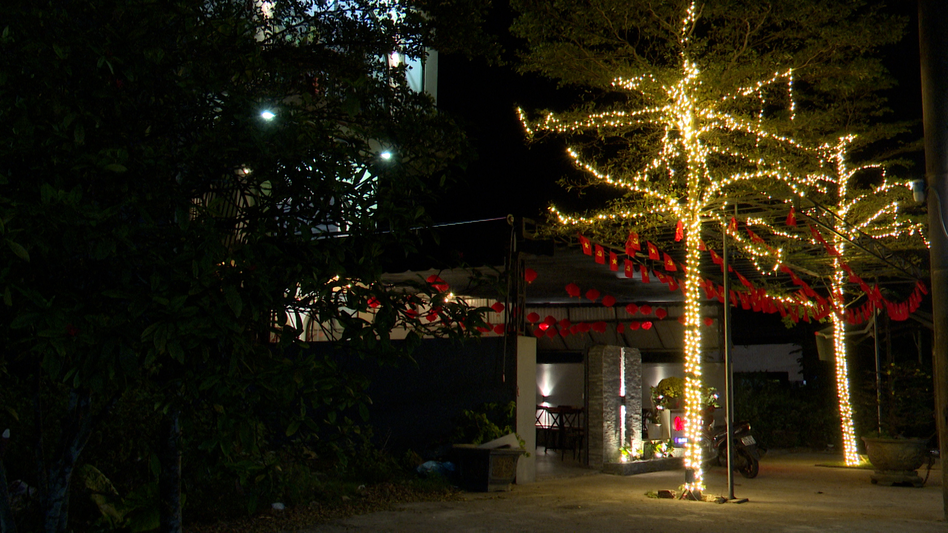 Năm nay, xu hướng trang trí của bà con có sự kết hợp thú vị giữa nét truyền thống và hiện đại. Bên cạnh những chậu hoa rực rỡ đủ sắc màu thì hệ thống đèn LED cũng được giăng mắc khắp các ngõ xóm, làm bừng sáng làng quê khi đêm về.